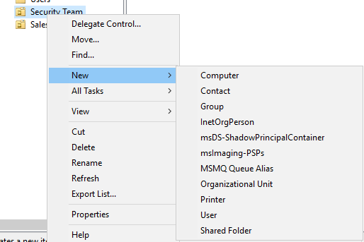 To add users, computers, and more to the unit you just created, right-click on the new unit and navigate to "New." From there, you can select the specific type of object you want to add, such as users or computers.