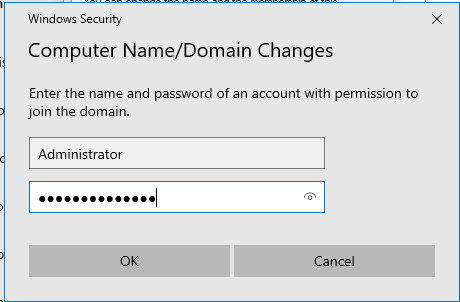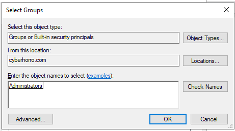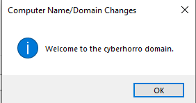 Click "OK," and you will be prompted to log in. Log in using the credentials of the Administrator account for the "cyberhorro" or "DC1," then click "OK."
