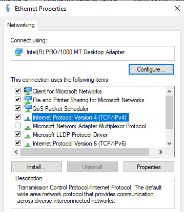 Continuing, choose (IPv4) and click on "Properties."