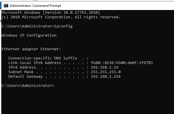 Once I configured the new static IP, I opened the command prompt (cmd) to verify whether the IP had changed according to my preferences.