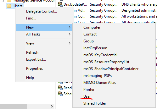 To add a new user, simply right-click on "Users," navigate to "New," and then click on "User."