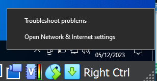 To address this issue on both machines, I accessed network settings by right-clicking on the network icon in the bottom right corner of the system tray and selecting "Open Network and Internet Settings," similar to our previous steps for setting the static IP address.