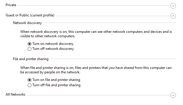 Note: It's important to highlight that we turned on network discovery for private, guest or public, and all networks to ensure comprehensive connectivity.