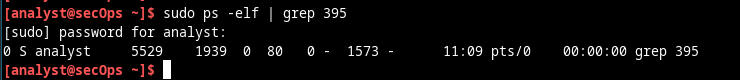 In the output above, the ps command is piped through the grep command to filter for only the lines containing the number 395. The result is one line with text wrapping. The process PID 395 is nginx.