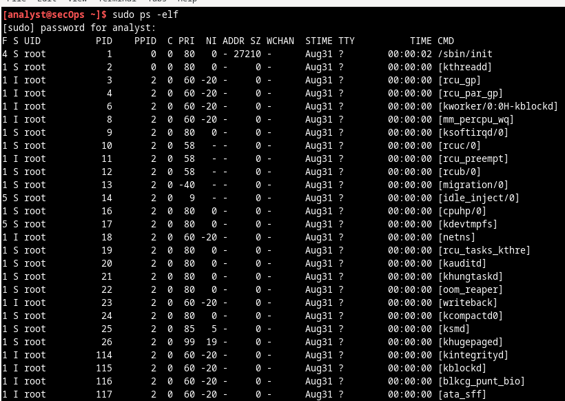 Their are many different programs running on a given computer, I then displayed the running programs with the sudo ps -elf command.