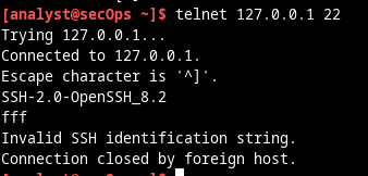 The Telnet protocol operates on port 23 using TCP by default. The telnet client however, allows for a different port to be specified. By changing the port and connecting to a server, the telnet client allows for a network analyst to quickly assess the nature of a specific server by communicating directly to it.