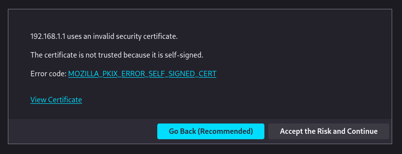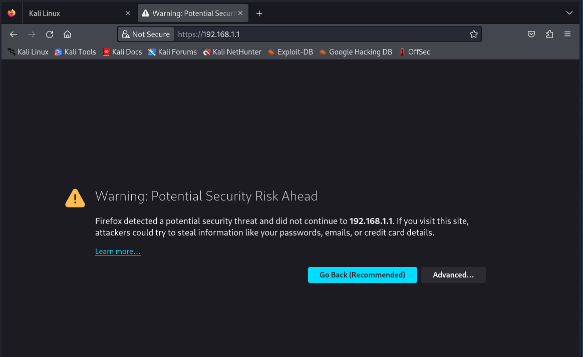Open the web browser on your Kali machine and enter "192.168.1.1" into the address bar.