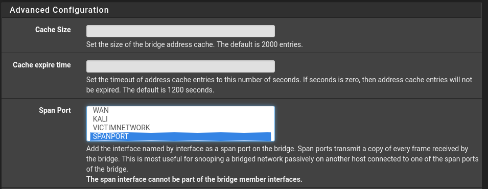 Repeat the outlined steps for each available port, customizing their descriptions to suit our needs. Ensure that you enable the port without an assigned IP, named "SpanPort" in your case, to complete the configuration. Remember to save your changes and click on "Apply Changes" after each modification to activate the configurations.