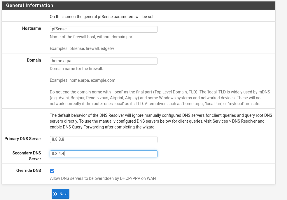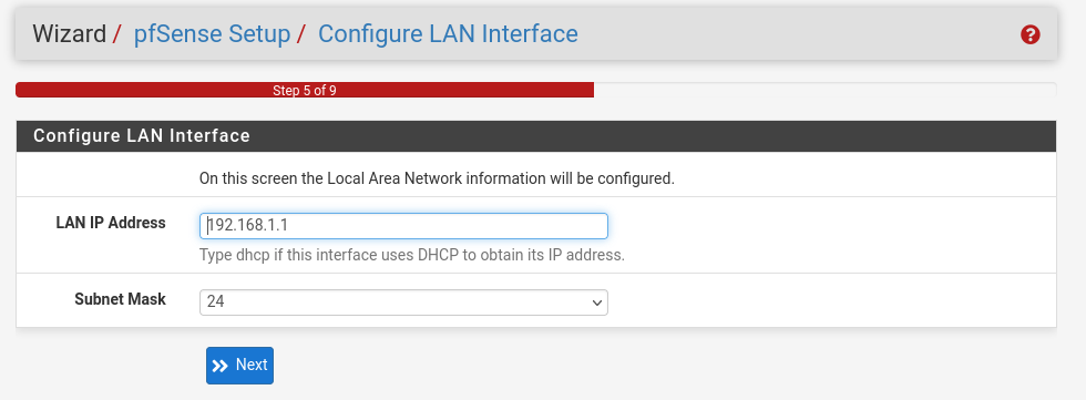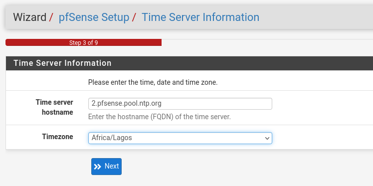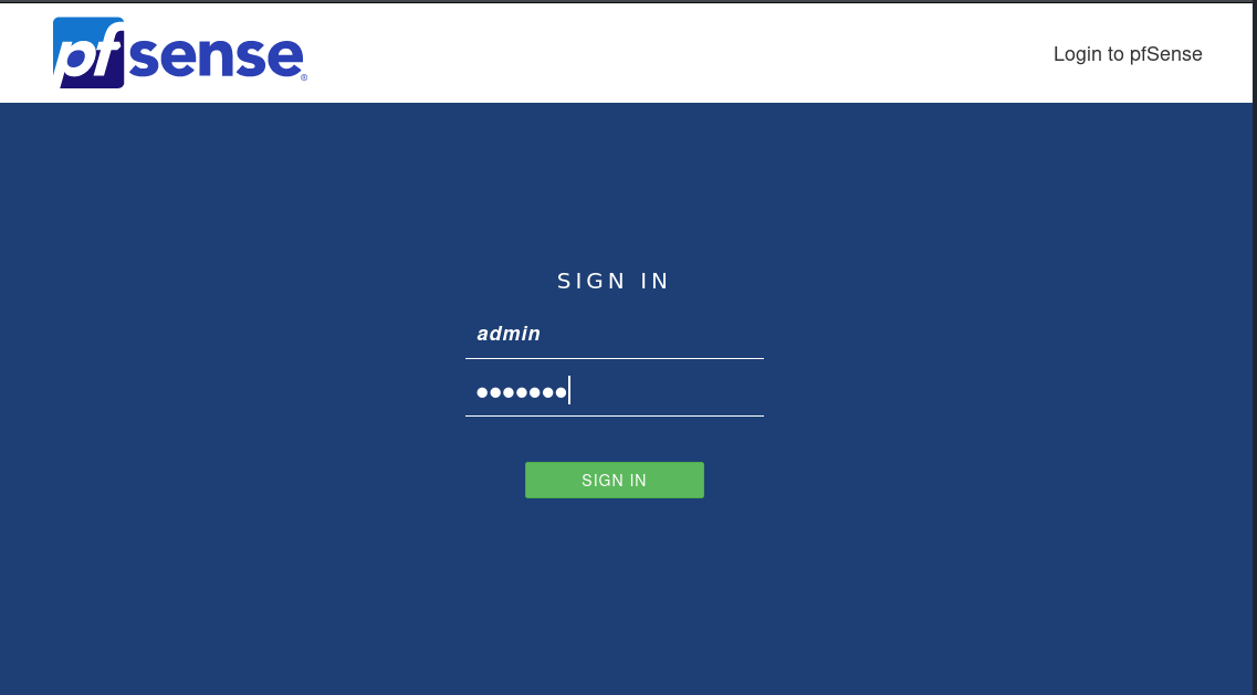 Upon successful login, you will be directed to the pfSense setup wizard/page.
